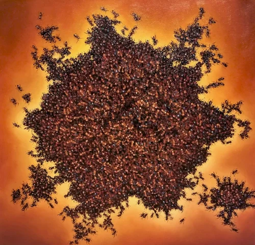 In the Swarm series I am exploring the concept of emergent intelligence in species that survive as a collective. By using the vehicle of the swarm I am able to create what appears to be abstract drawings while rendering the subjects realistically. I want to confront feelings of fear normally associated with these kinds of organisms, while still showing how beautiful each one of these occurrences can be.